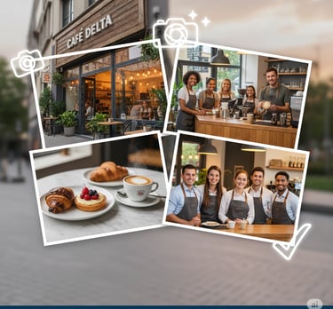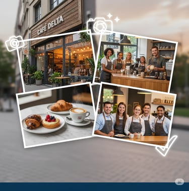 Capturamos a essência do seu negócio com fotos profissionais da sua fachada, interior, produtos e equipe. Apresentamos sua marca de forma atraente, convidando clientes a escolherem você.